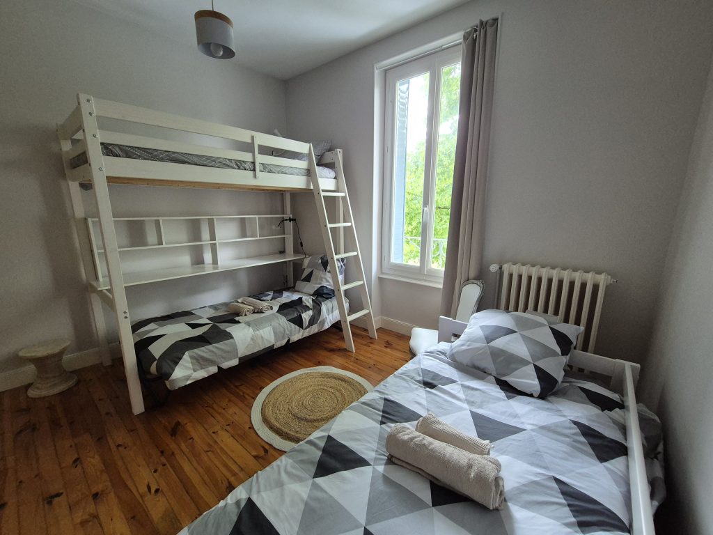 • une chambre avec 3 lits simples (dont un en mezzanine)